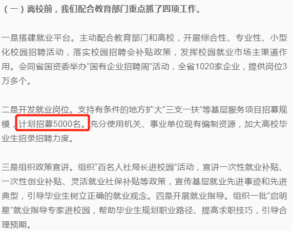 5月19日,安徽省人社局召開新聞發布會明確:“支持有條件的地方擴大三支一扶等基層服務項目招募規模,計劃招募5000名”,而2019年安徽三支一扶招錄人數為1140人,擴招了338.60%。