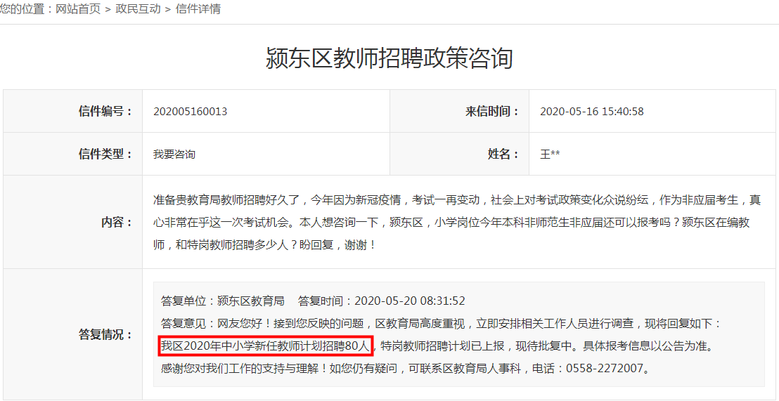 感謝您對我們工作的支持與理解!如您仍有疑問,可聯系區教育局人事科,電話:0558-2272007。