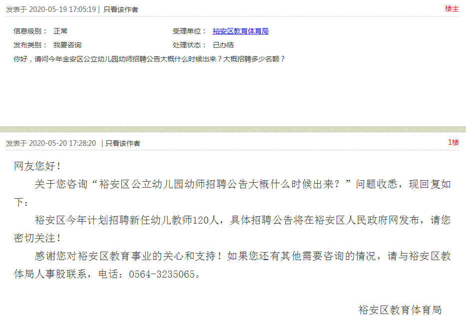 關于您咨詢“裕安區公立幼兒園幼師招聘公告大概什么時候出來?”問題收悉,現回復如下: