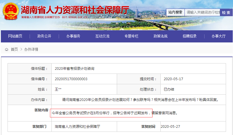 重磅消息:2020年湖南公務員考試筆試時間預計8月舉行,招考公告將于近期發布!速看: