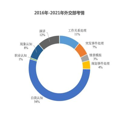 我們對外交部幾年試題進行了梳理和研究,考查內容既涉及工作關系處理、突發事件處理、規劃事件處理、職業認知、現象認知這五種基礎題型,也包括自我認知、演講、情景模擬這三類小眾題型。