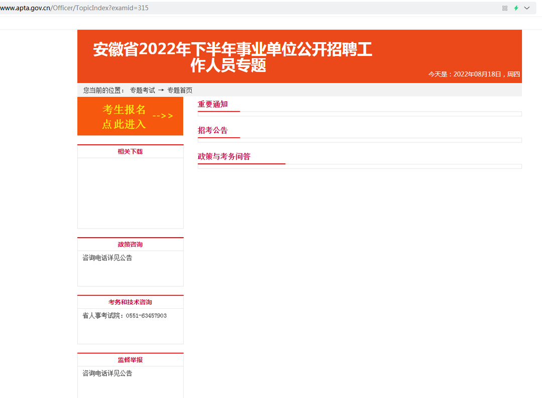 2022年安徽下半年事業單位公開招聘工作人員專題已出