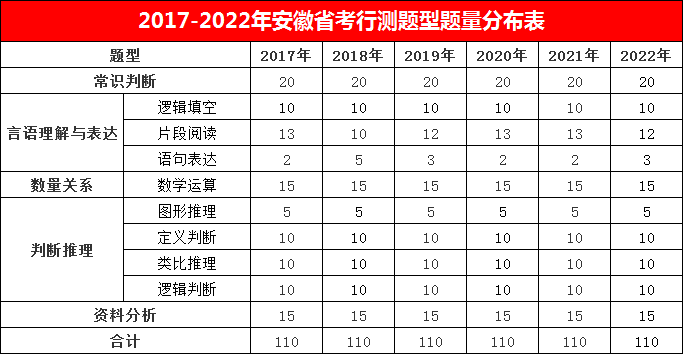 二、安徽省考行測分值分布