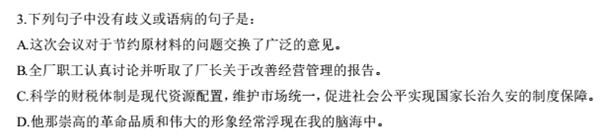 答案:C。解析:A項,狀語和定語次序錯位,應改為廣泛地交換了意見。B項,語序不當,應改為全廠職工認真聽取并討論了廠長的報告。D項,品質是抽象概念,是不能浮現在腦海中的,不合邏輯。故這道題選C。