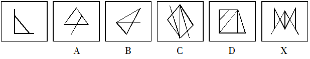 1.A、B、C、D中哪個與X圖形互換位置后,新的六個圖形序列能形成一定的規律?