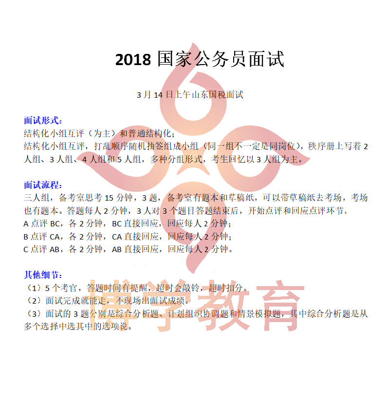 2018國考面試國稅系統結構化小組面試