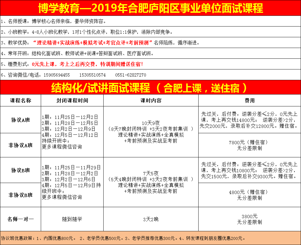 安徽省2019年下半年事業單位聯考面試培訓課程(0元先上課,考上再付錢)